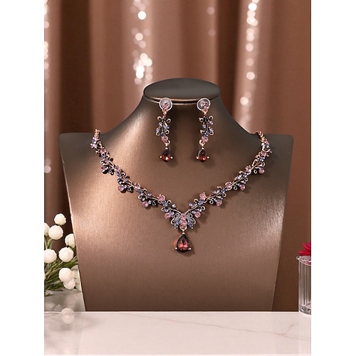 Elegante collana e orecchini da donna placcati in oro con cristalli scintillanti a forma di goccia: gioielli di lusso per matrimoni, feste ed eventi formali