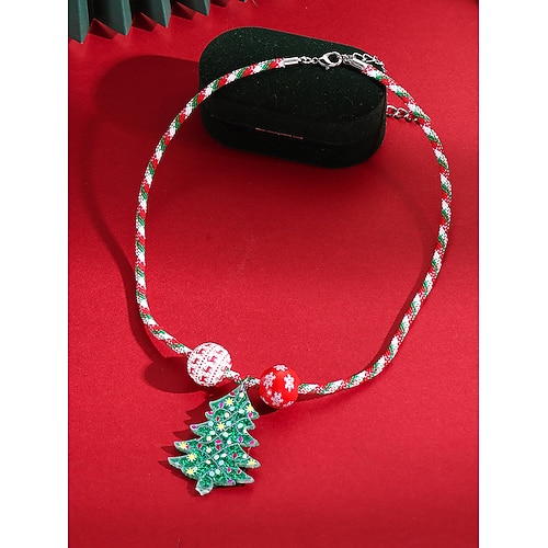 Collana natalizia da donna in lega con campanellini rossi e verdi, ornamento a forma di fiocco di neve, perfetta per la moda delle feste e come regalo festivo