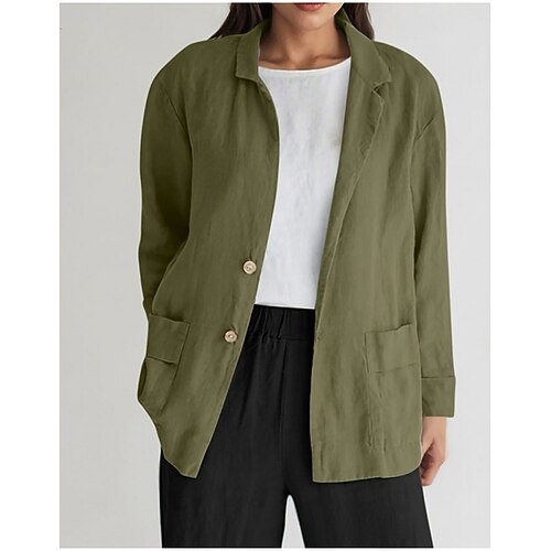 giacca da donna in cotone e lino casual comoda traspirante bottoni elegante quotidiano semplice retrò tinta unita casual regolare revers a lancia vestibilità ampia manica lunga capospalla nero verde