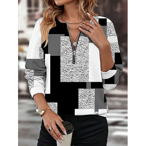 Per donna Felpa Pullover Felpe con cerniera Grafico Geometrico Blocco di colori Moda Casual Manica Lunga Girocollo Top Regolari Streetwear Abbigliamento Quotidiano Cerniera Stampato Rosso Blu Viola