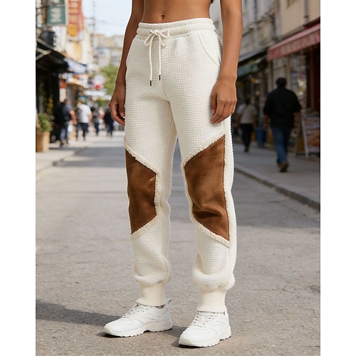Per donna Pantaloni Affusolati Chinos Vacanza Streetwear Casual Lunghezza intera Vita media Blocco di colori Tasca Design con Coulisse Elastica Calore Termico Micro-elastico Quotidiano All'aperto