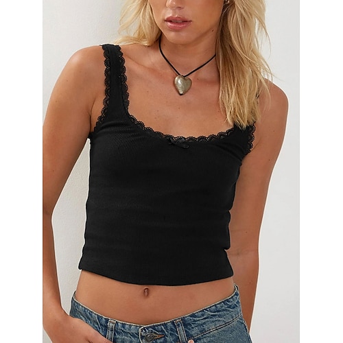 Per donna Canotta a canotta Tinta unica Quotidiano Elegante Senza Maniche Scollo Tondo Top corti Nero Bianco Grigio scuro Albicocca Grigio Estate Primavera