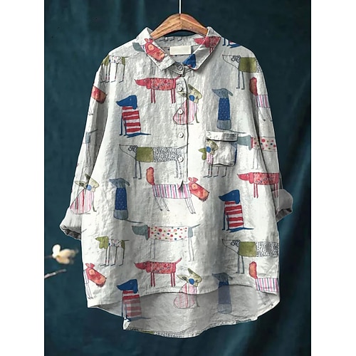Per donna Blusa Grafico Geometrico Attivo Vintage Quotidiano Manica Lunga Colletto a Camicia Top Regolari Quotidiano Bottoni Grigio chiaro Estate Primavera