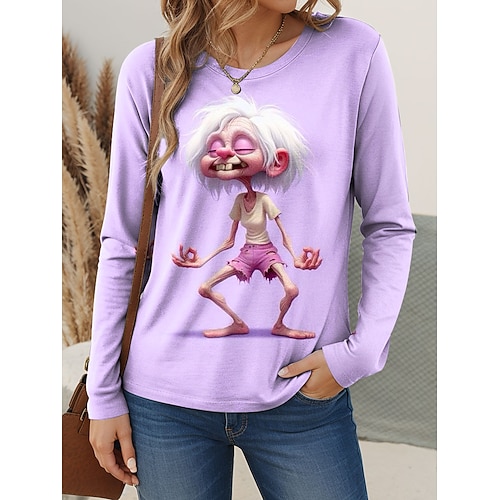 Per donna Maglietta Grafico Cartoni animati Sfumatura Vintage Elegante Classico Manica Lunga Girocollo Top Regolari Quotidiano Stampato Rosa Viola Cachi Grigio Primavera Autunno Inverno