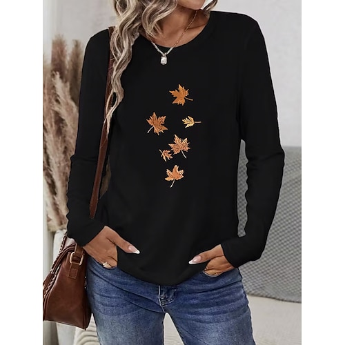 Per donna Maglietta Floreale Grafico Vintage Moda Elegante Manica Lunga Girocollo Top Regolari Quotidiano Weekend Stampato Nero Bianco Giallo Rosso Verde Estate Primavera Autunno