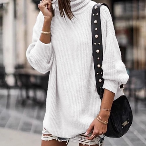 Per donna Felpa Maglione Elegante Moda Streetwear Tinta unica Dolcevita Lavorato a maglia Stampato Manica Lunga Top Regolari Maglia All'aperto Casa Lavoro Rosso bordeaux Nero Autunno Inverno