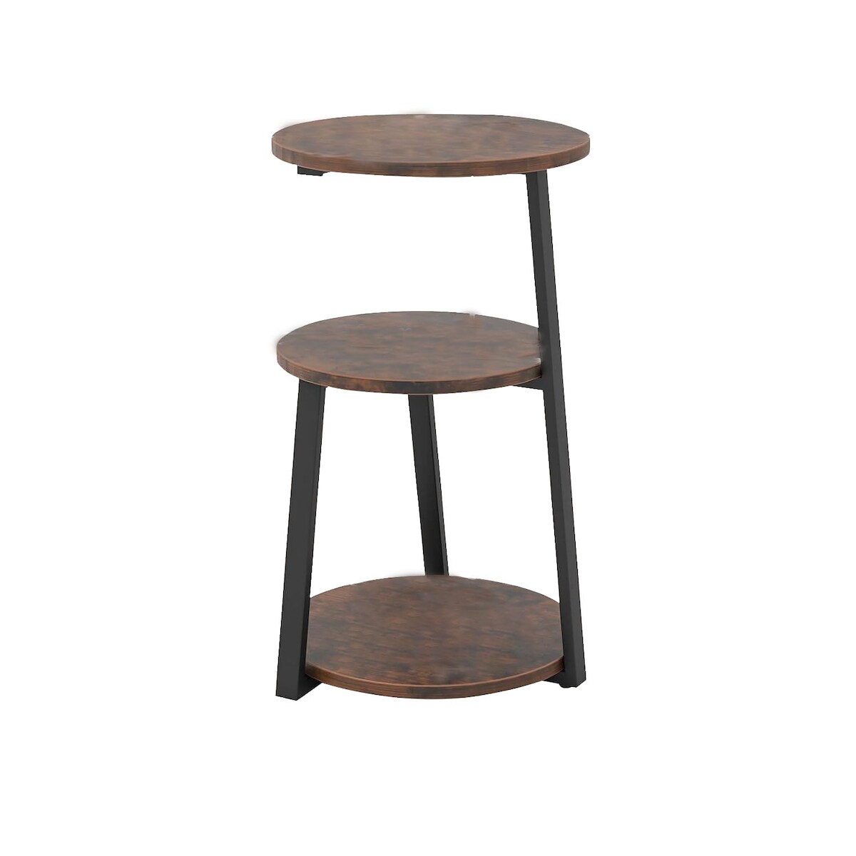 COSTWAY Beistelltisch mit 3 Ebenen, Set von 2, Runder Sofatisch mit Metallrahmen und verstellbaren Fußkissen