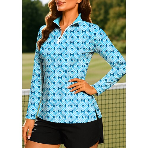 Per donna Geometrico Blocco di colori Arte astratta Top Maglietta Maglietta sportiva Polo da golf Manica Lunga Pois Righe Stampato UPF50 Resistente ai Raggi UV Protezione UV Elastico Traspirante