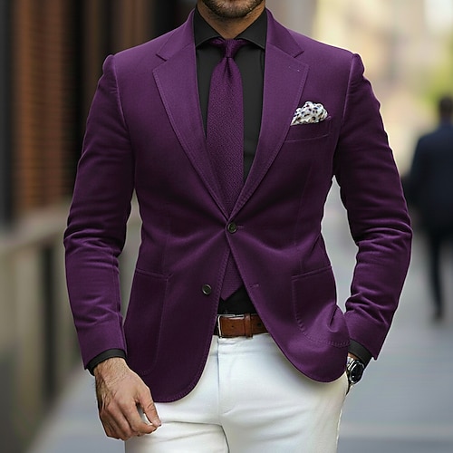 Da uomo Cappotto Invernale Blazer di velluto Formale Abbigliamento da sera Evento / Festa Classico Autunno Inverno Velluto Tinta unica Monopetto Un Bottone Giacca Rosso 1 Giallo Blu reale Verde
