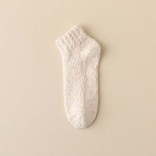 Calzini da donna invisibili e anti-perdita, calzini invernali spessi in pile corallo tinta unita, caldi calzini da casa con suola antiscivolo in silicone