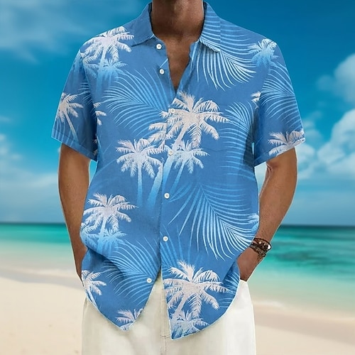 Per uomo Albero di Cocco Fiori tropicali Foglia di palma Camicia hawaiana estiva Camicia con Bottoni Camicia Aloha Manica Corta Hawaiano Ferie Abbigliamento mare Estate Primavera Collo ripiegato