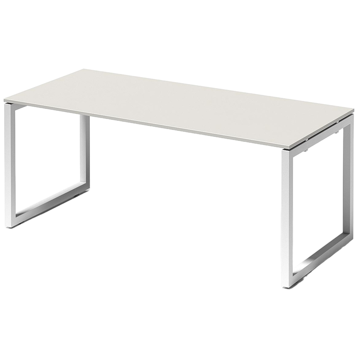 Bisley Cito Schreibtisch 180x80 cm, Tischplatte in grau, O-Gestell in Weiß - Bürotisch & Computertisch, PC Tisch für's Büro, Arbeitshöhe: 74 cm