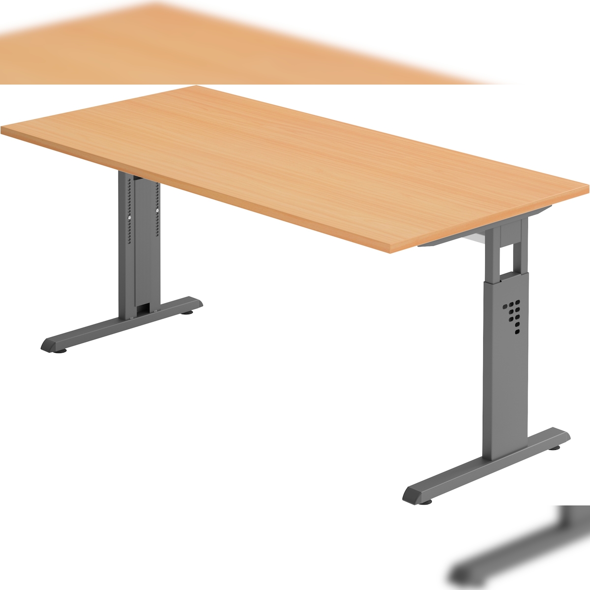 bümö höhenverstellbarer Schreibtisch O-Serie 160x80 cm in Buche, Gestell in Graphit - PC Tisch für's Büro manuell höhenverstellbar, Computertisch