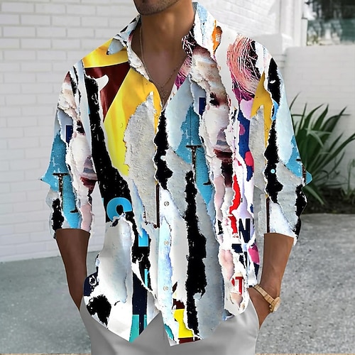 Per uomo Illusione ottica Stampa in difficoltà Camicia Camicia con Bottoni Manica Lunga Moda Casual Vacanza Quotidiano Abbigliamento casual alla moda Primavera Autunno Collo ripiegato Stampa 3D
