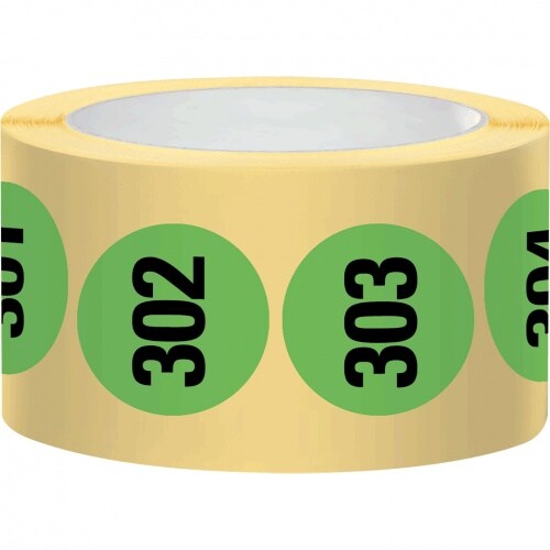 Aufkleber I Markierungspunkt, numeriert 001-500, hellgrün, Haftpapier, ablösbar, Ø 25mm, 500/Rolle