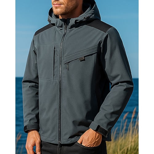 Per uomo Giacca softshell Giacca di transizione Uscire Giacca a Vento Tasca Tutte le stagioni Colore Solido / Tinta Unita Tempo libero Con Cappuccio Nero Blu scuro Grigio Giacca