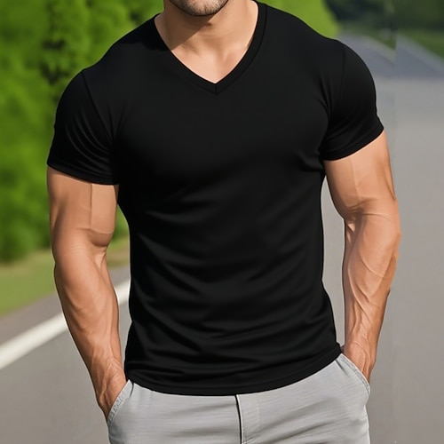 Per uomo Maglietta Maglietta in misto cotone Manica Corta Maniche Corte Scollo a V Estate Tutte le stagioni Tinta unica Semplice Designer Essenziale Moderno Contemporaneo Scollo a V Vacanza