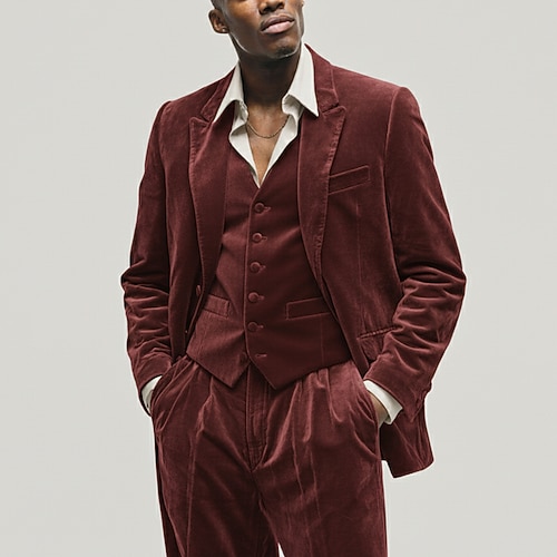 Uomo Affari Casuale Completi in Tweed Bavero classico Nero Borgogna Affari Formale Tinta unita Vestibilità su misura 2 pezzi Monopetto Due Bottoni