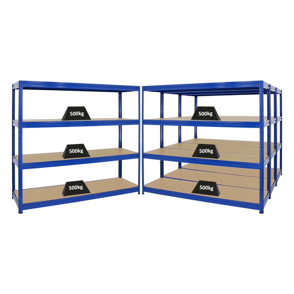PROREGAL Mega Deal 4er-Sparset Profi-Schwerlastregal DINO HxBxT 180x180x60cm Fachlast 500kg Blau, Kellerregal, Steckregal, Garagenregal