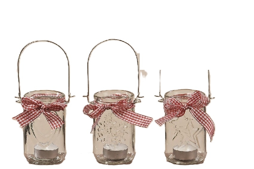 Windlicht Glas Stern/Herz,/Schneeflocke Band 3 teilig