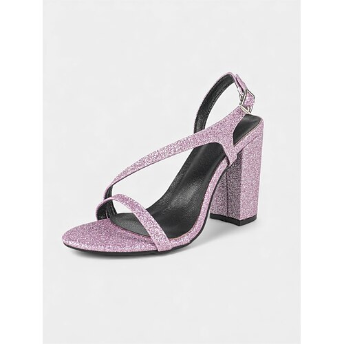 sandali da festa con tacco a blocco glitterato da donna - tacchi aperti con cinturini scintillanti per la vigilia di Capodanno e le feste serata fuori