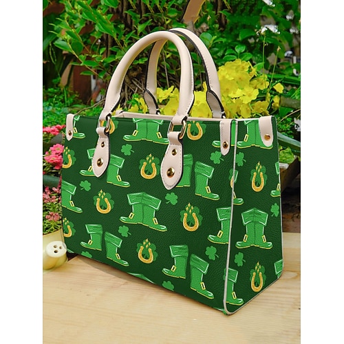 borsa tote verde a quadri per la festa di San Patrizio da donna con motivo a trifoglio: perfetta per le celebrazioni delle feste e per l'uso quotidiano