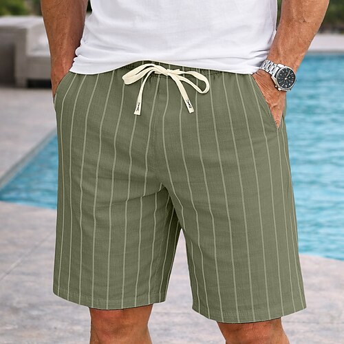 Per uomo Shorts Shorts di Lino Pantaloncini Estivi Shorts da Spiaggia Coulisse Elastico in vita A righe Comodità Traspirante Lunghezza al ginocchio Quotidiano All'aperto Ferie Vacanza Moda Nero Bianco