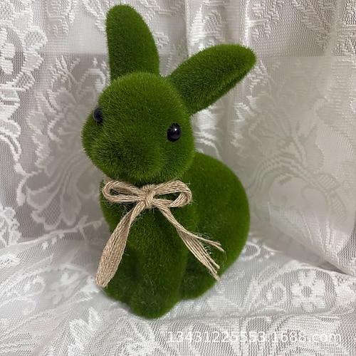 1 pezzo di decorazione schiaccianoci primaverile/pasquale, classica decorazione da giardinaggio, statua di coniglio pasquale verde con fiocco, statua di coniglio in muschio per esterni, decorazione