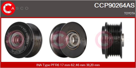 CASCO Riemenscheibe, Generator CCP90264AS Universal 62,46mm für HYUNDAI TOYOTA IKA 3.5472.1 37321-25301 27415-33050
