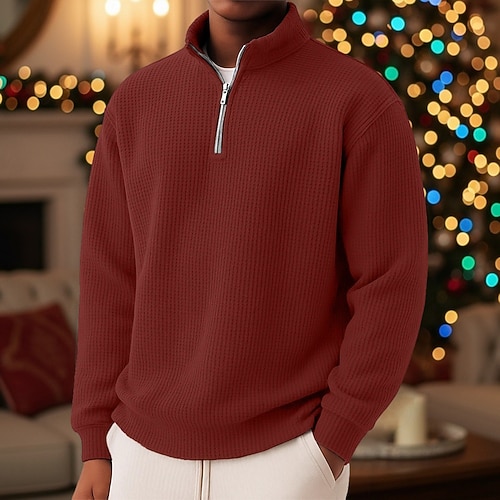 Per uomo Magliette Polo a Nido d'Ape Polo con zip Sport all'Aperto Casuale Colletto Mao Con cerniera Manica Lunga Moda Moderno Tinta unica Testurizzato Lavorato a maglia Primavera Autunno Tutte le