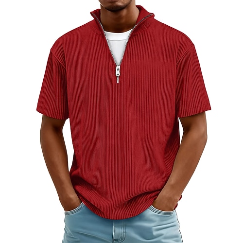 Per uomo Polo Camicia di Velluto a Coste Vacanza Streetwear Zip a un quarto Manica Corta Moda Essenziale Semplice Estate Vestibilità su misura Viola Nero Bianco Vino Blu marino Azzurro cielo Polo