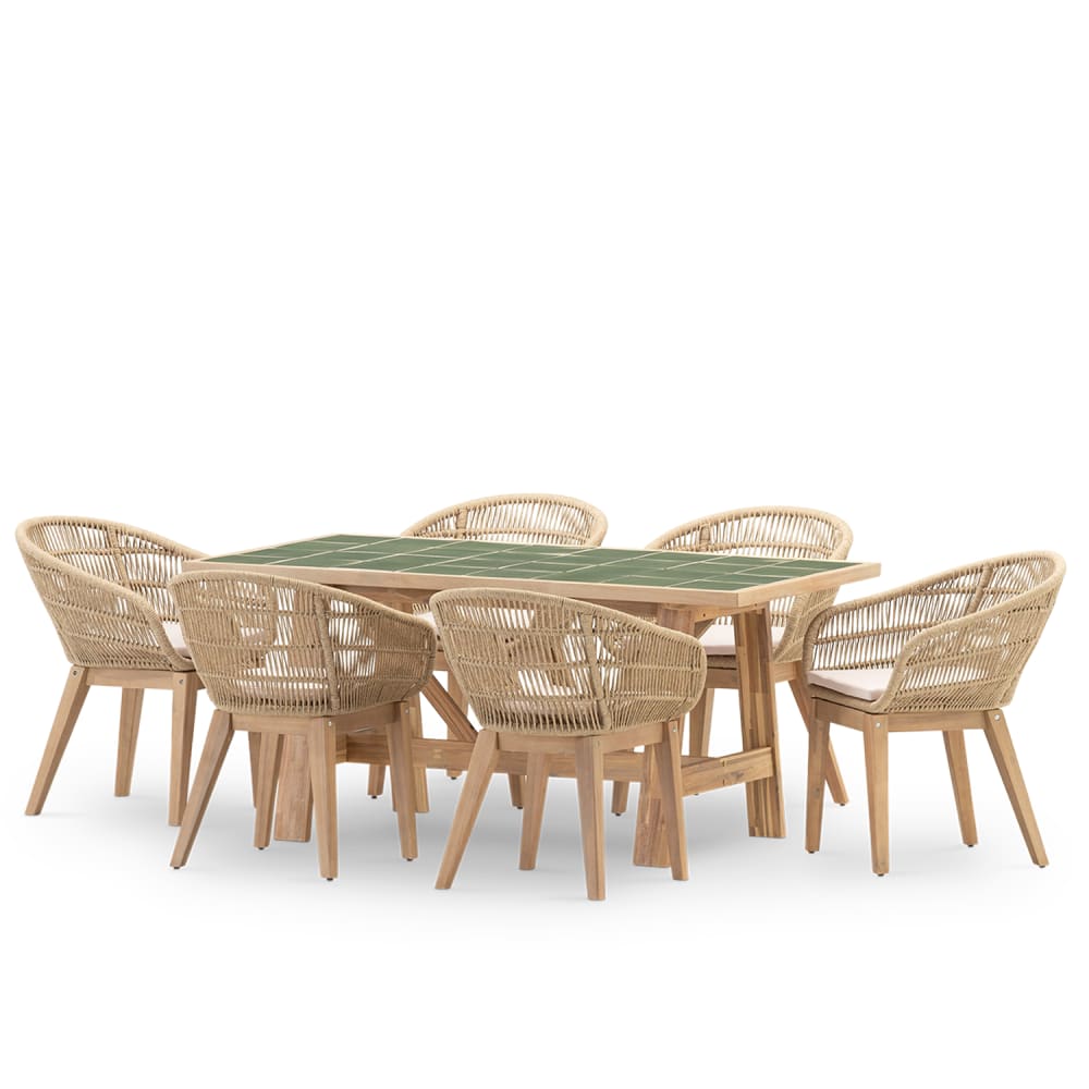 Set di tavolo e 6 sedie in legno e ceramica verde 168x87