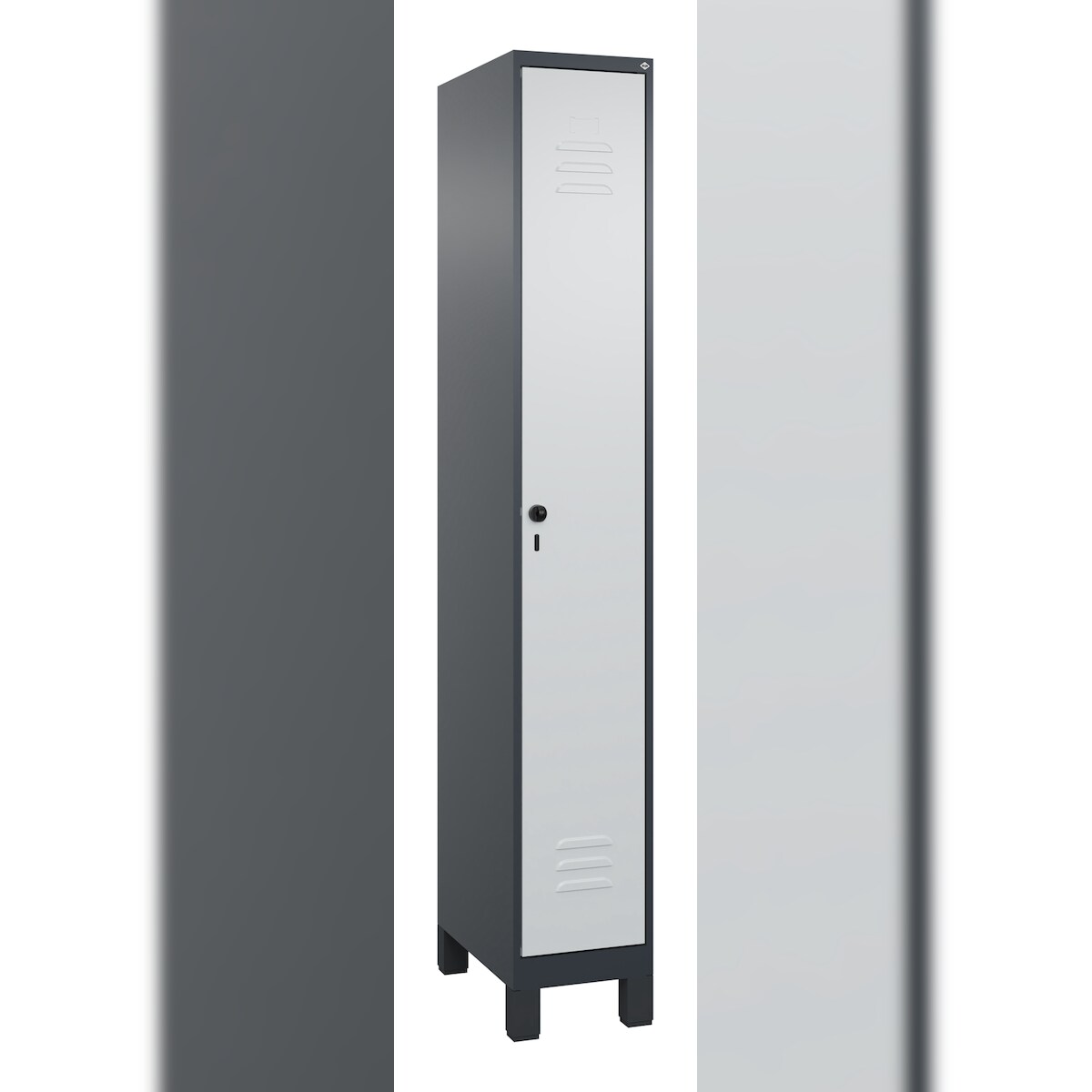 C+P Spind Classic PLUS, Füßen, 1 Abteil, HxBxT 195x30x50cm, Sicherheitsdrehriegel, Anthrazit/Hellgrau von PROREGAL