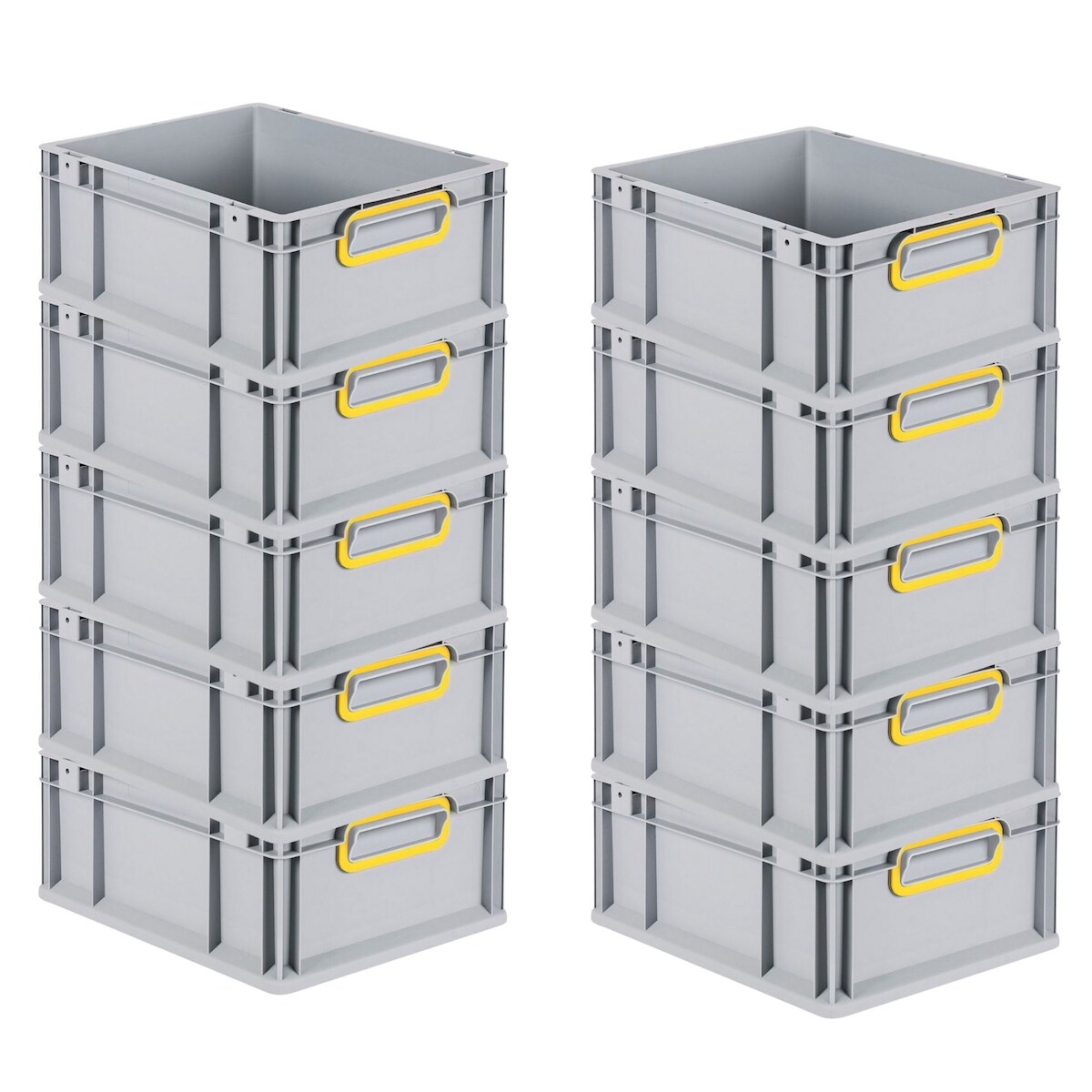PROREGAL 10x Eurobox NextGen Color | HxBxT 17x30x40cm | 16 Liter | Griffe gelb geschlossen | Glatter Boden | Eurobehälter