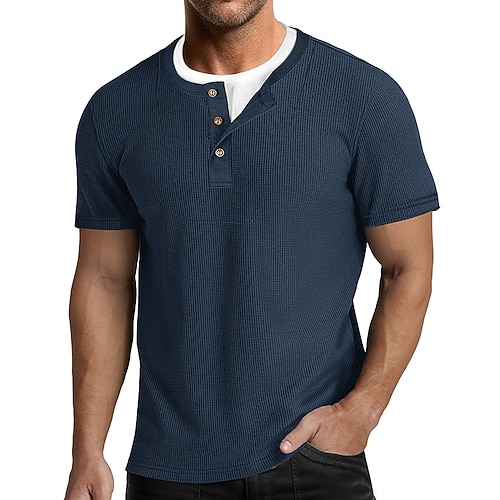 Per uomo Maglia Henley a nido d'ape Maglietta Maglietta in misto cotone Manica Corta Blocco di colori Semplice Moda Designer Casual Blocco di colore Bottoni Finto due pezzi Girocollo Henley Casuale