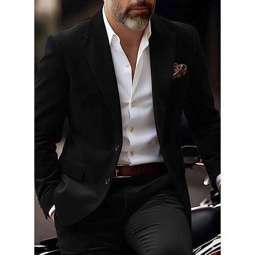 Per uomo Giacca blazer Collare di chiusura Vintage Festa Velluto Tinta unita Blazer Borgogna Verde Vestibilità standard Doppiopetto a quattro bottoni
