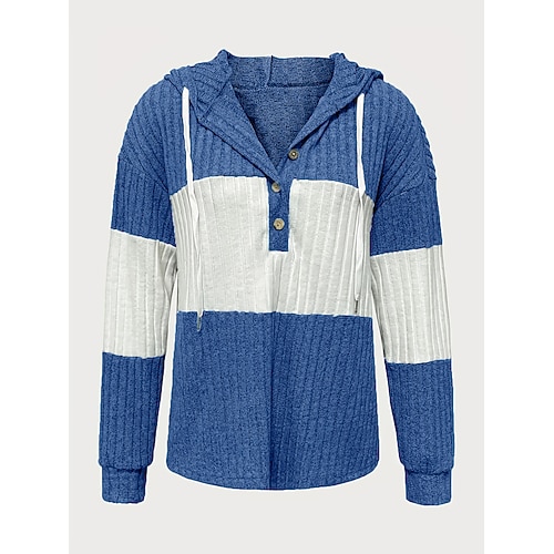 Per donna Felpa con cappuccio A righe Elegante Casual Manica Lunga Con Cappuccio Top Regolari Ferie Bottoni Nero Rosso Blu Cachi Estate Autunno
