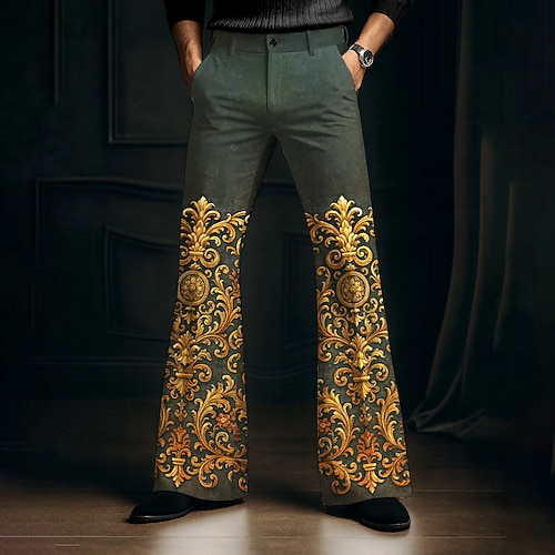 Per uomo Stampa Floreale Fiori Pantaloni da discoteca Pantaloni a zampa d'elefante anni '60 e '70 Misura del girovita medio Western Vintage Retrò All'aperto Feste Casuale Tasche Laterali Pantaloni a