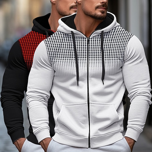 Per uomo Felpa con cappuccio Felpa con cappuccio a zip intera Felpa con cappuccio in pile Bianco rosso Rosso grigio Bianco nero Gray bianco NeroGrigio Con Cappuccio A Pois Semplice Cerniera