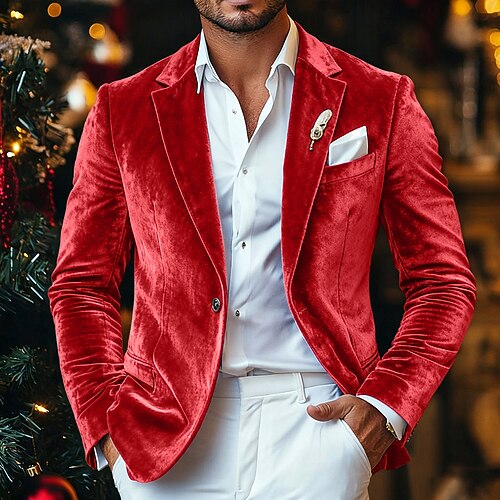 Da uomo Cappotto Invernale Blazer di velluto Formale Abbigliamento da sera Evento / Festa Classico Autunno Autunno Inverno 100% Poliestere Velluto Tinta unica Monopetto Un Bottone Giacca Rosso Blu