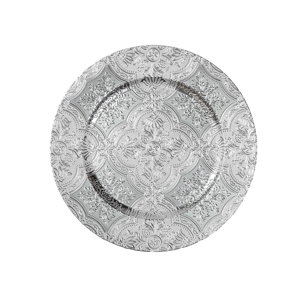 Inges Magic & Goodz Dekoteller 33cm Kunststoff geprägte Ajour Ornamente - Silber