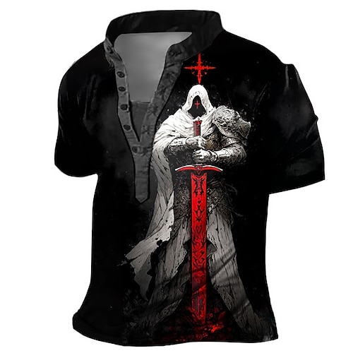 Per uomo Cavalieri Templari Croce Maglia Henley Maglietta Stampa 3D Gotico Sottocultura Vacanza Quotidiano Uscire Primavera Estate Nero / bianco Nero Rosso Henley Maglietta Henley