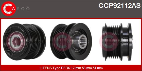 CASCO Riemenscheibe, Generator CCP92112AS Universal 58mm für CHRYSLER IKA 4861513AA 4861513AB 4861513AC