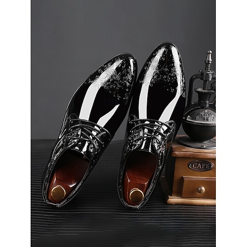 scarpe stringate da uomo in vernice nera con dettagli in rilievo - calzature di alta qualità per abiti da sera, riunioni e matrimoni di lusso