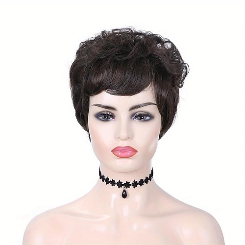 parrucche di capelli ricci naturali a strati corti biondi misti marroni con frangia parrucche piene di tessuto sintetico resistente al calore per le donne 6 pollici