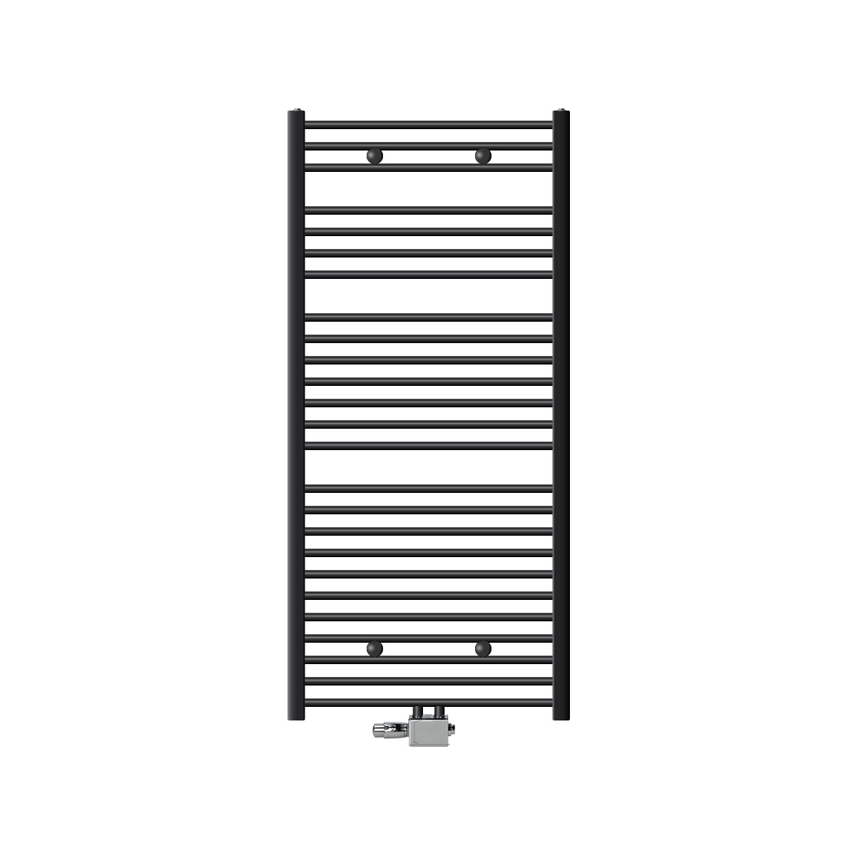 LuxeBath ECD Germany Badheizkörper 750x1500 mm Anthrazit | Mittelanschluss, gebogen, Thermostat, Anschlussgarnitur Universal