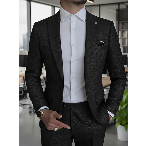 Uomo Casuale Abiti da lavoro Bavero classico Nero Borgogna Quotidiano Affari Tinta unita Vestibilità su misura 2 pezzi Monopetto Due Bottoni
