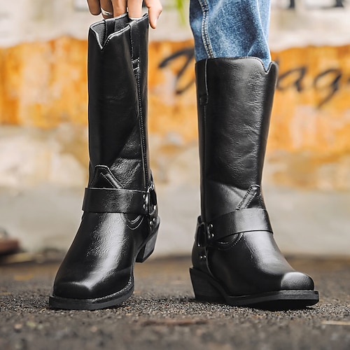 Per uomo Stivali Stivali da Cowboy Retrò Camminata Casual Quotidiano PU Confortevole Stivali a Metà Polpaccio Mocassino Marrone scuro Marrone giallastro Nero Primavera Autunno