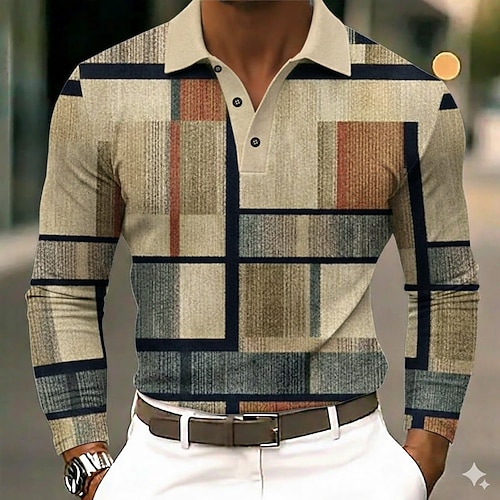 Per uomo Blocco di colori Polo Manica Lunga Magliette polo Bavero Business Casual All'aperto Athleisure Abbigliamento quotidiano Stampa 3D Bottoni Primavera Autunno Blu Viola Marrone