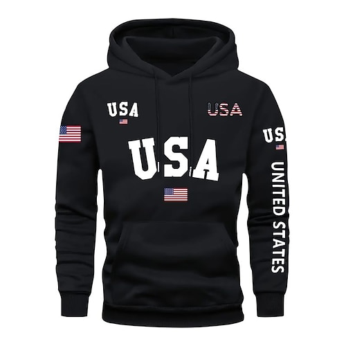 Per uomo Felpa con cappuccio Nero Rosa Rosso Blu Verde Con Cappuccio Bandiera Americana Tasca Coulisse Tasca Frontale Sport Outdoor Quotidiano Ferie Poliestere Streetwear Grafica Casual Autunno
